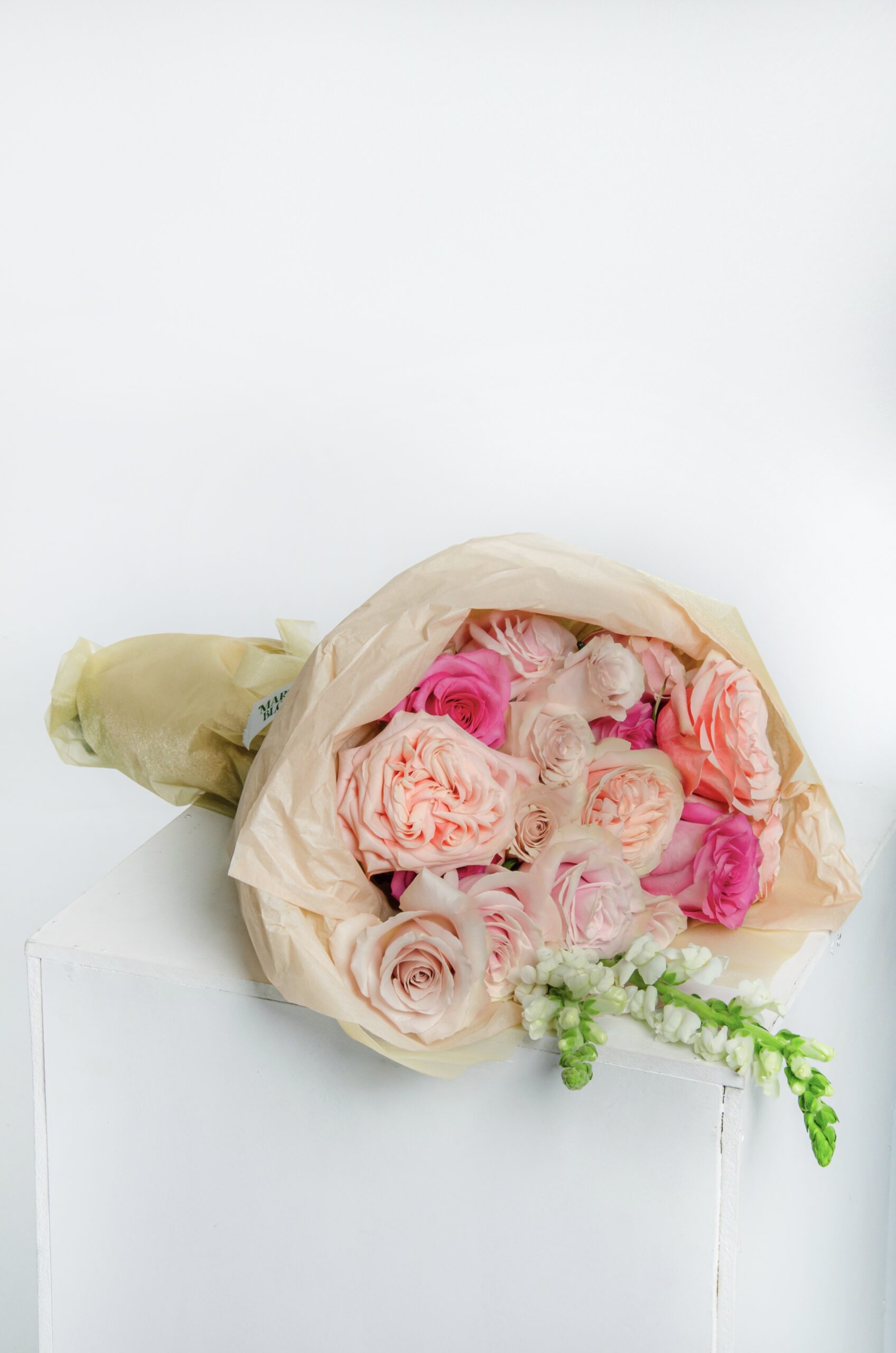 Flora es feminidad en su forma más bonita: esa que aparece cuando nos sentimos seguras, radiantes, felices por dentro. Es un bouquet que se vive como un estado del alma y que mezcla rosas en diferentes tonalidades.