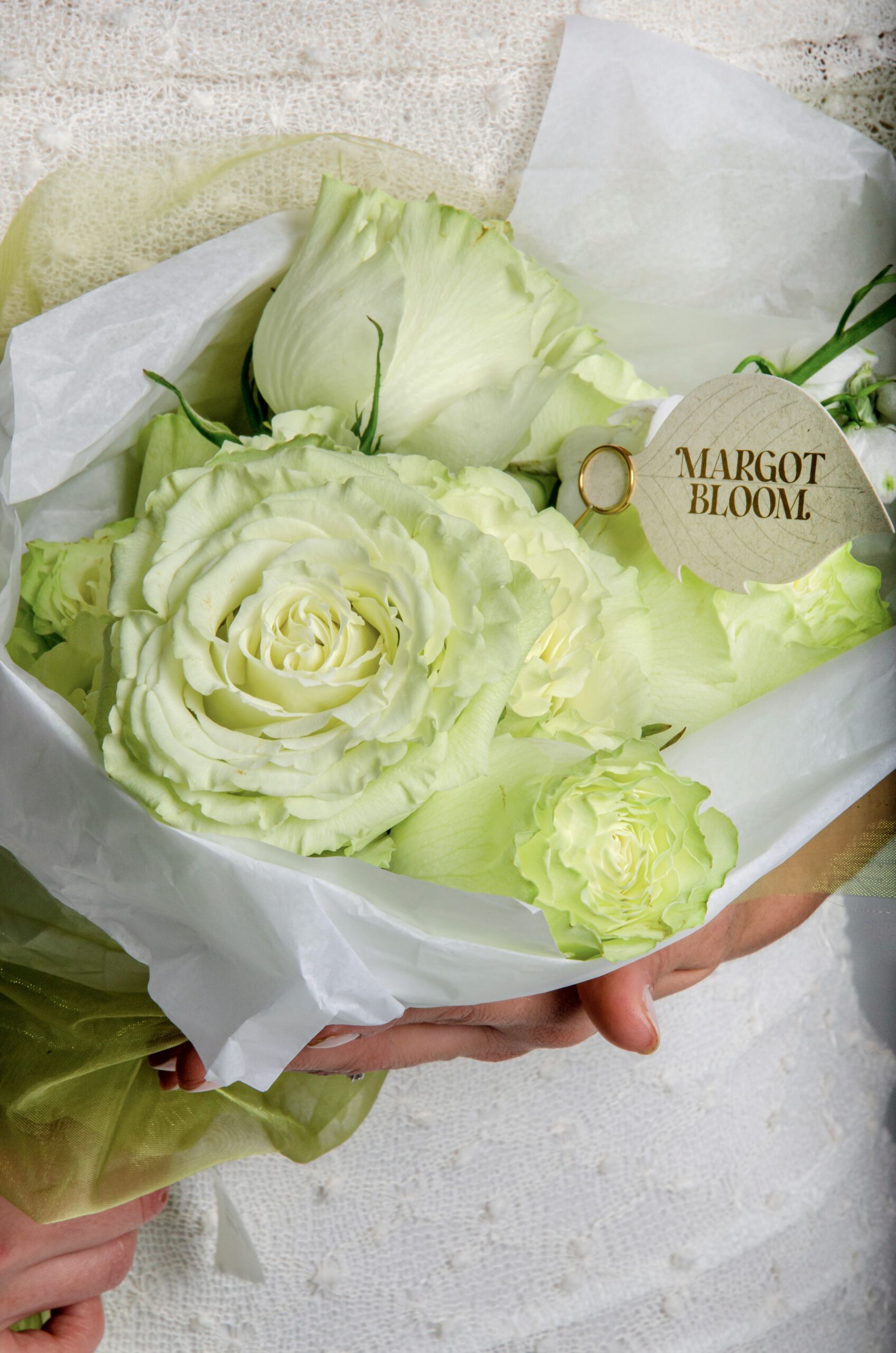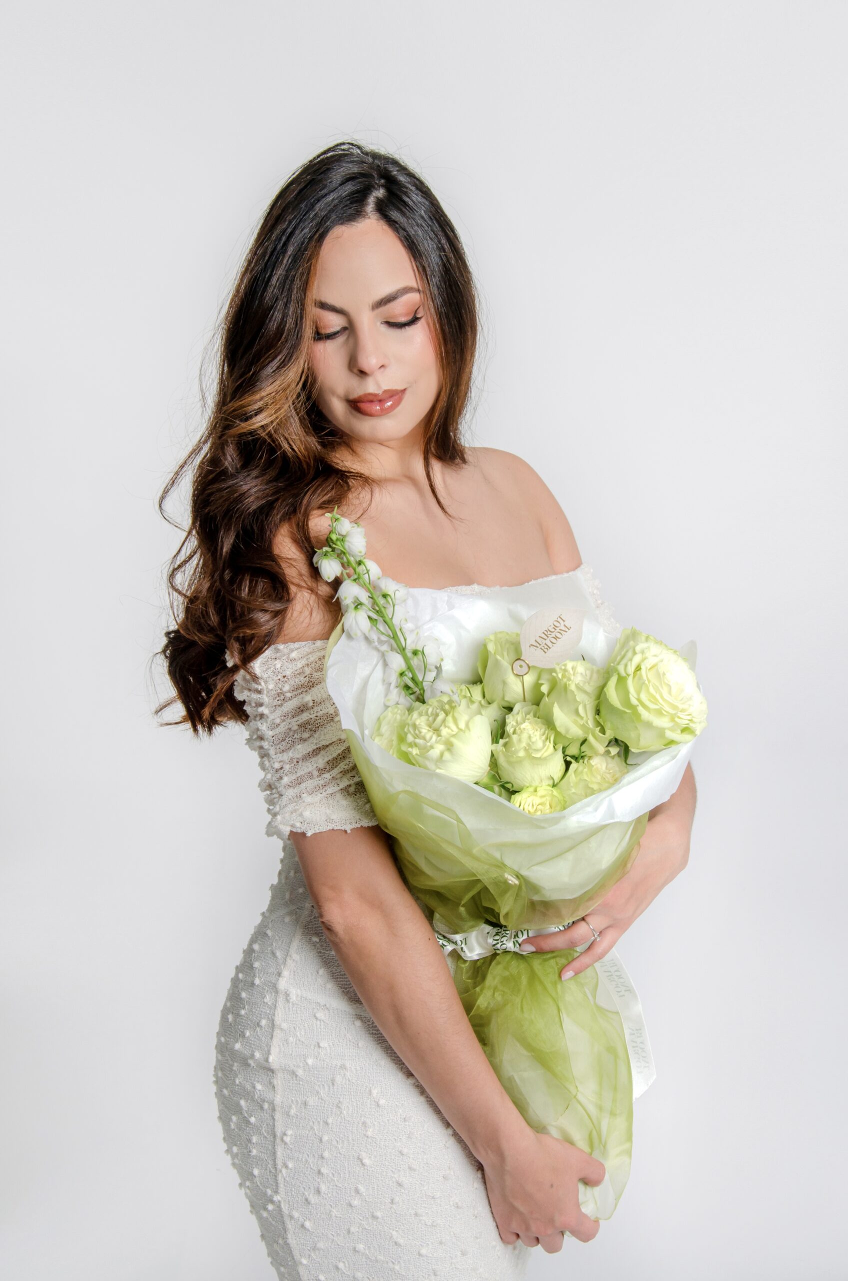 Olivia Bloom es nuestro bouquet icónico de veinticinco rosas color verde matcha, el color firma de Margot Bloom. Un tono exclusivo que se reconoce al instante y eleva cualquier espacio con frescura y sofisticación.